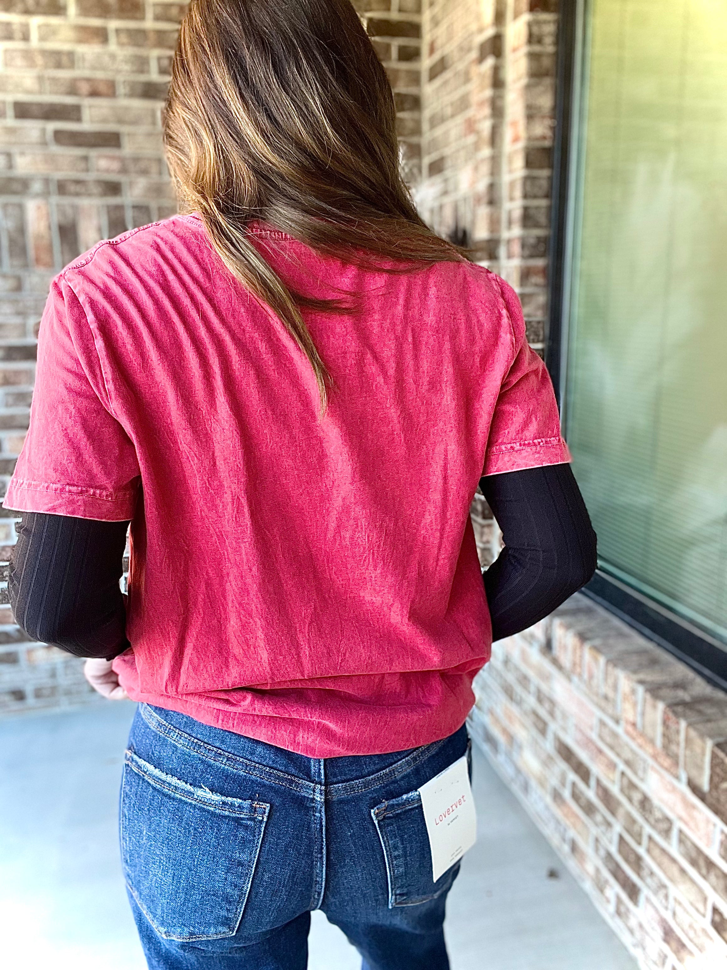 This soft, unisex fit, cotton essential features a vintage mineral wash dye effect. Crafted with 100% cotton.